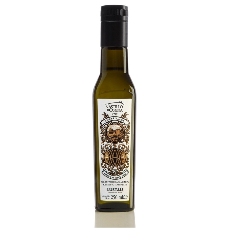 El primer Alimento a base a Aceite de Oliva afinado en barrica de vino amontillado de Jerez con más de medio siglo de vejez. Castillo de Canena Amontillado es fruto de la pasión por dos productos gastronómicos tan sobresalientes como lo son los aceite de Castillo de Canena y los vinos generosos de Jerez. La frescura de nuestro aceite adquiere la solera del vino generoso al afinarlo en la bota jerezana de amontillado. El fascinante perfil aromático del amontillado, con sus oleadas inagotables de frutos secos y matices salinos, conducidos suavemente por la delicadeza del aceite que los fija en nuestro paladar. ¡Una experiencia gastronómica única que os inspirará en vuestras recetas clásicas y también en las más rompedoras!. Sugerencias de consumo: Perfecto para maridar gran cantidad de platos y recetas, desde las más clásicas hasta las más vanguardistas. Pescados a la sal y al horno, aves y cerdo a la brasa o al horno, setas y boletus, carpaccio y tartar de gambas o atún, foie a la plancha, patés de perdiz, pasteles de carne, mojama, huevas de maruca y de mujol o almejas, berberechos y ostras, ya sean crudos, en conserva o a la sartén. Sin olvidar la magnífica experiencia sensorial que resulta al maridarlo con chocolate negro o frutos secos.