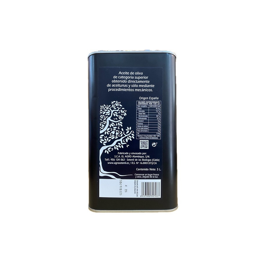 ACEITE DE OLIVA VIRGEN EXTRA AGROSETENIL 3 LITROS LATA GOURMET DE SETENIL DE LAS BODEGAS