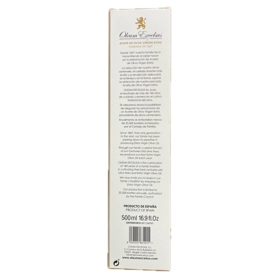 OLEUM EXCELSUS ACEITE DE OLIVA VIRGEN EXTRA PREMIUM 500ML – EXCLUSIVO DE LA SIERRA DE JAÉN