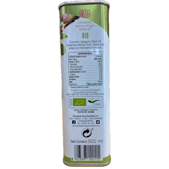 ACEITE DE OLIVA VIRGEN EXTRA ECOLÓGICO 500ML ALMAOLIVA BIO EN LATA