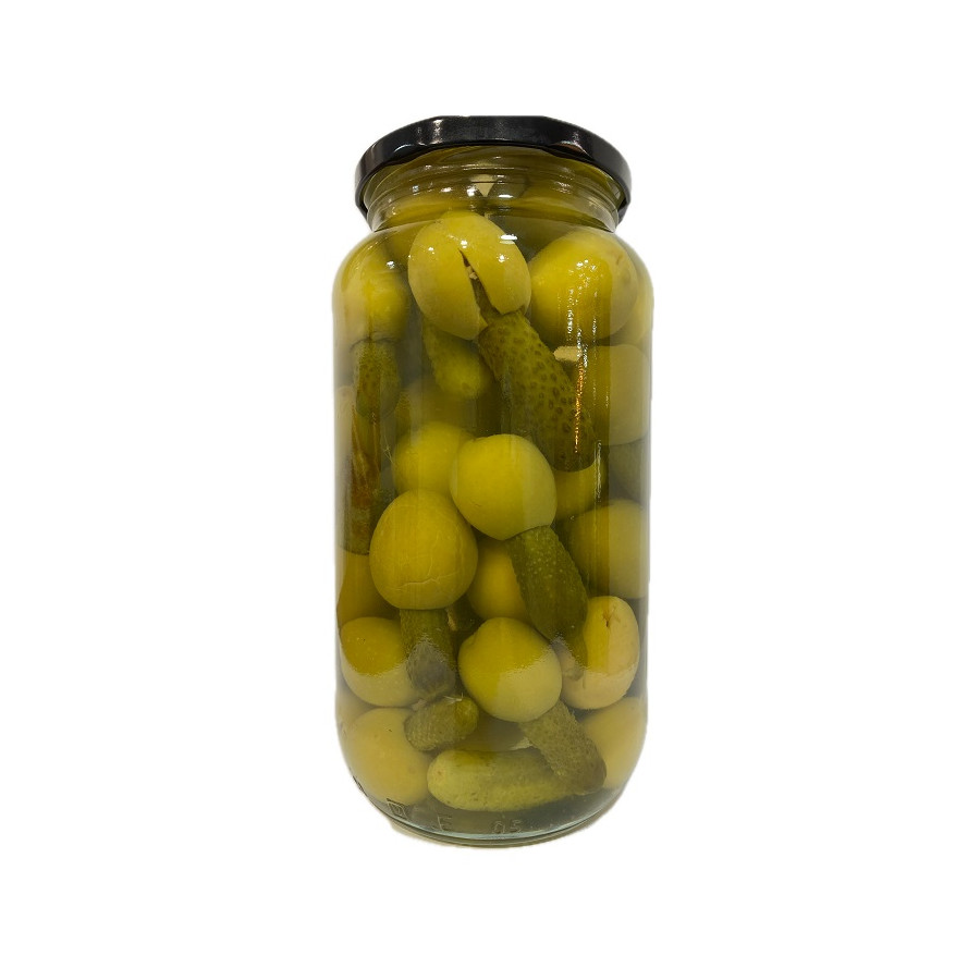 Las Aceitunas Rellenas de Pepinillo sabor Anchoa La Ermita 1.400 g (600 g escurrido) son un aperitivo único y lleno de carácter, elaborado en Medina Sidonia (Cádiz) por la empresa familiar Aceitunas La Ermita. Cada aceituna, de variedad seleccionada, se presenta cuidadosamente rellena con pepinillo, combinando la jugosidad de la aceituna, el frescor del pepinillo y un toque de aliño con sabor a anchoa que realza la experiencia en boca. Este contraste de texturas y sabores las convierte en una opción irresistible para servir como tapa, acompañar bebidas o dar un toque especial a tus ensaladas y platos fríos. Se trata de un producto natural y elaborado siguiendo métodos tradicionales, sin renunciar a la innovación en sabores que caracterizan a esta empresa gaditana. El envase de vidrio de 1.400 g, con 600 g de peso escurrido, ofrece una cantidad generosa, ideal tanto para el consumo diario como para reuniones o celebraciones. Puedes adquirir estas deliciosas Aceitunas Rellenas de Pepinillo sabor Anchoa La Ermita en nuestra tienda física Aires de Cádiz, ubicada en la Calle San Francisco nº 15 de Cádiz capital, donde seleccionamos los mejores productos gourmet de la provincia. También están disponibles en nuestra tienda online www.airesdecadiz.com, para que disfrutes de la auténtica calidad gaditana estés donde estés.