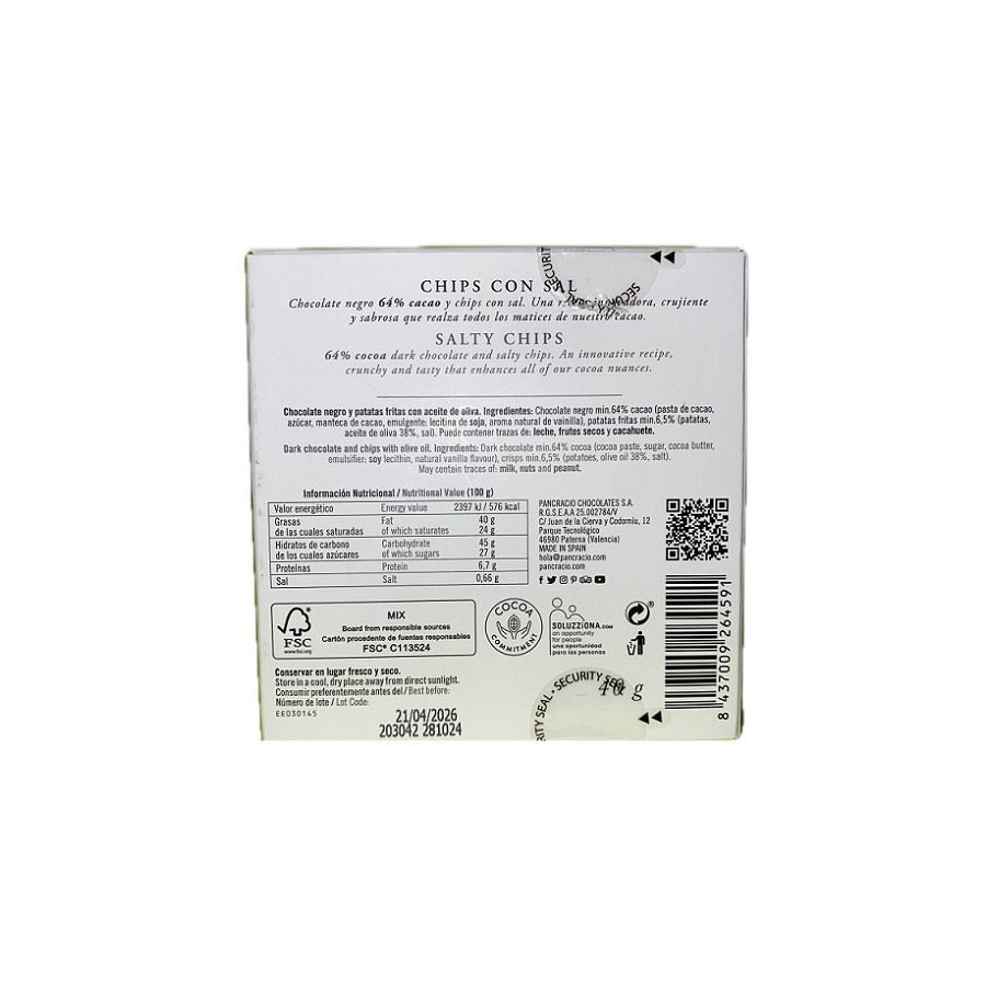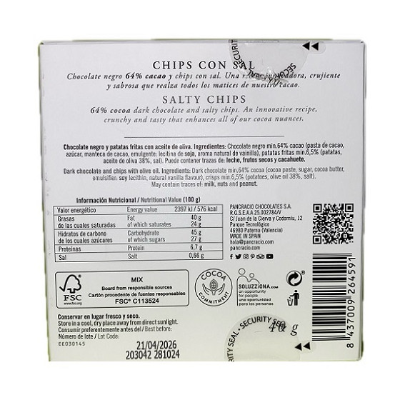 MINI TABLETA CHOCOLATE NEGRO 64% CHIPS CON SAL PANCRACIO 40G – GOURMET ESPAÑOL
