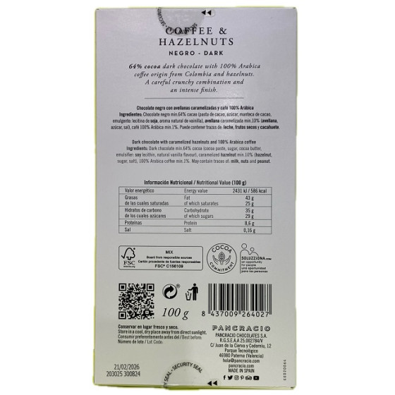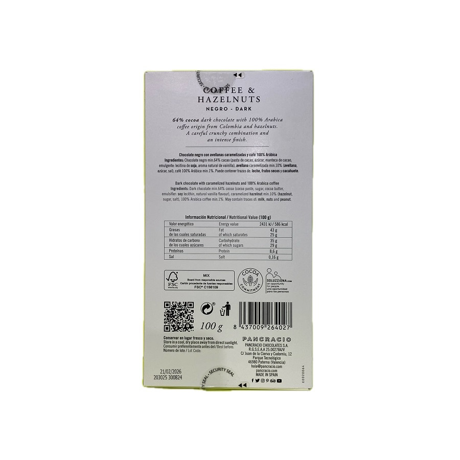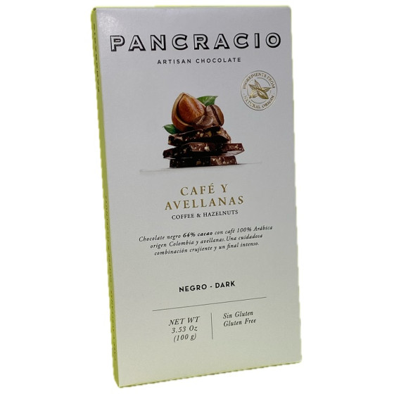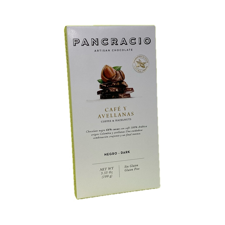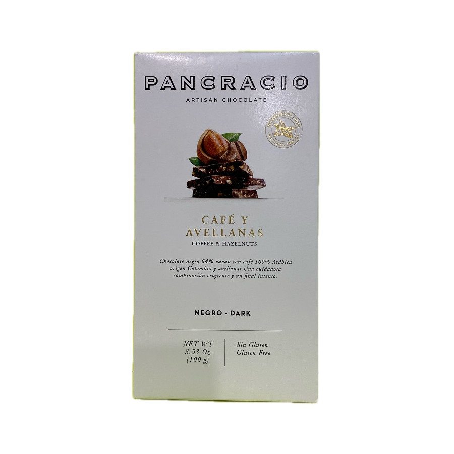 TABLETA CHOCOLATE NEGRO 64% CAFÉ Y AVELLANAS PANCRACIO 100G – GOURMET ARTESANAL