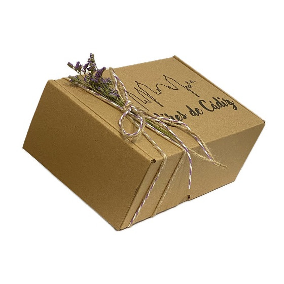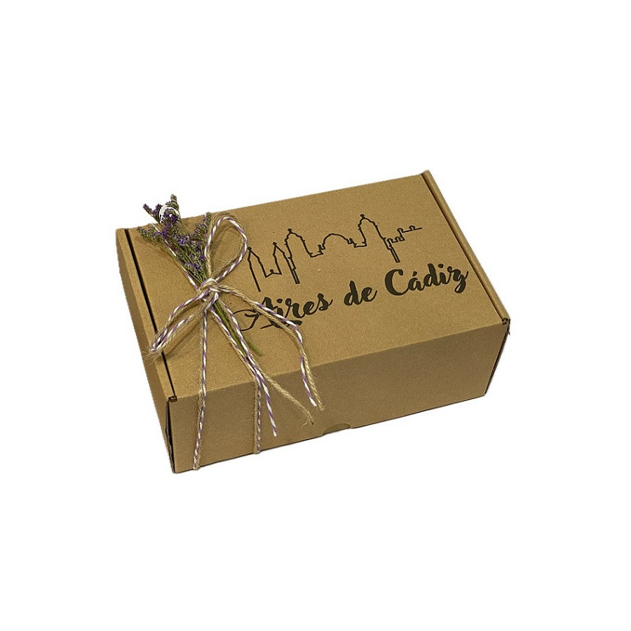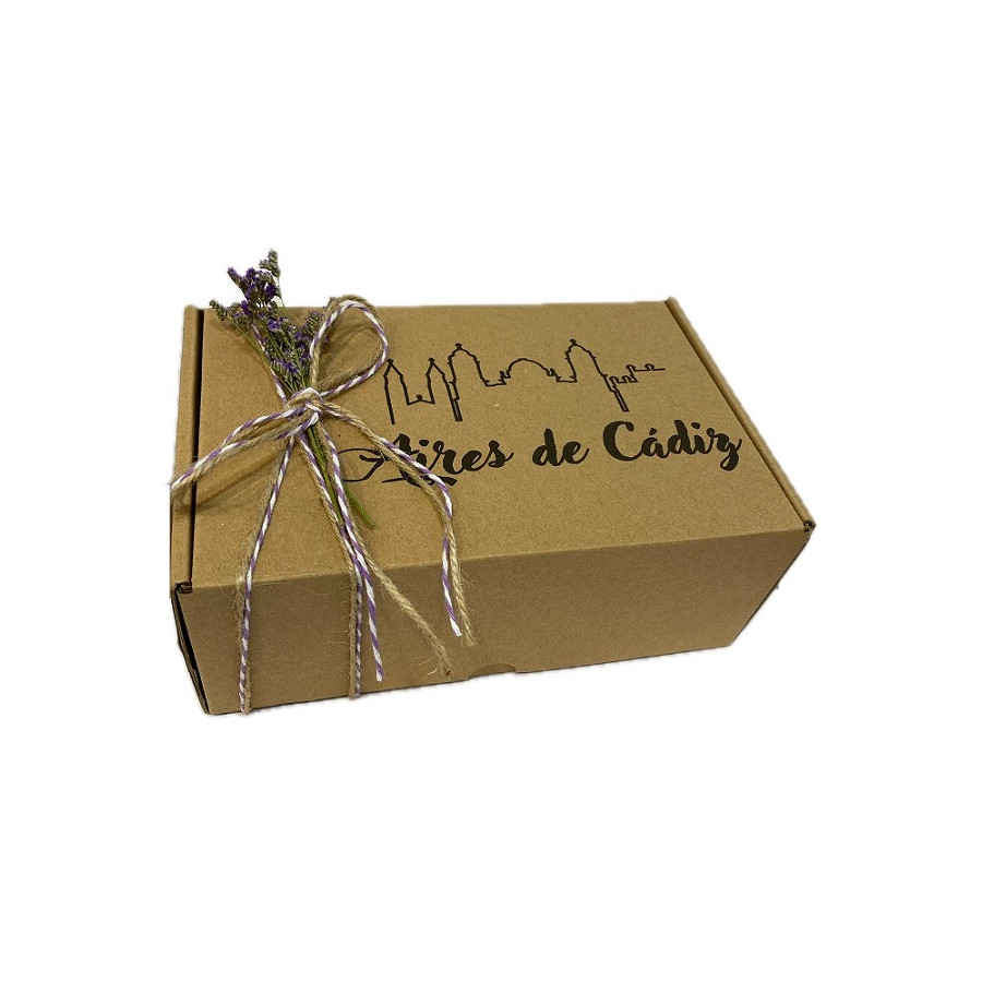 La caja de regalo pequeña de Aires de Cádiz, con medidas interiores aproximadas de 22 × 14 × 8,5 cm, es una opción elegante y cuidada para presentar combinaciones muy reducidas de productos gourmet. Fabricada en cartón resistente y decorada con el logotipo de nuestra tienda, está pensada para detalles sencillos y presentaciones compactas. ?? IMPORTANTE: Esta caja es adecuada únicamente para productos pequeños y en cantidades limitadas. No es válida para botellas de vino estándar, tarros grandes, varios productos voluminosos ni combinaciones completas. Antes de seleccionarla, es imprescindible comprobar las medidas y el número de artículos incluidos en el pedido. Su tamaño permite incluir, por ejemplo, 1 o 2 conservas pequeñas, una mermelada, chocolates o un detalle gourmet de formato reducido, siempre que las dimensiones totales lo permitan. Para pedidos con varios productos, botellas, quesos grandes o artículos de mayor volumen, recomendamos elegir una caja de tamaño superior para garantizar una correcta presentación. La elección del tamaño de la caja debe realizarse en función de los productos seleccionados. En caso de duda, nuestro equipo ajustará la caja adecuada para que tu pedido llegue perfectamente presentado, manteniendo la estética y calidad que caracterizan a Aires de Cádiz. Disponible en Aires de Cádiz, tu tienda gourmet en Calle San Francisco nº 15, Cádiz capital, y también online en www.airesdecadiz.com .