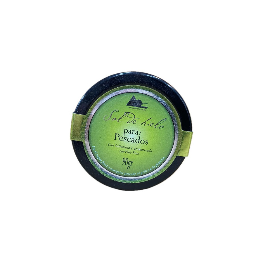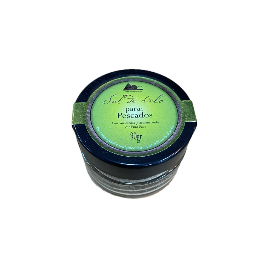 SAL DE HIELO PARA PESCADOS CON SALICORNIA Y AROMATIZADA CON VINO FINO 90 gr SALINAS SAN VICENTE