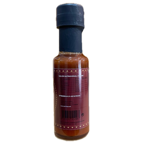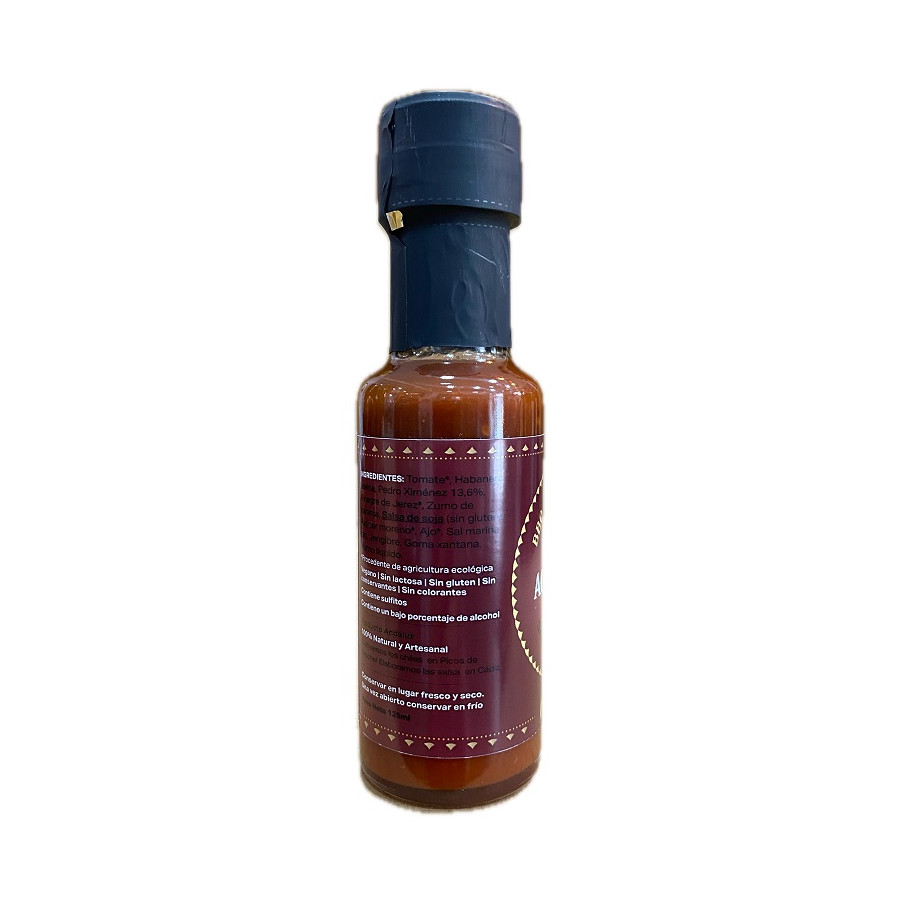 La salsa barbacoa artesanal Pedro Ximénez de Achilipú, en formato de 125 ml, es una fusión audaz y equilibrada que une lo mejor del sabor andaluz con un carácter picante de inspiración internacional. El ingrediente estrella, el vino Pedro Ximénez (13,6 %), aporta profundidad, notas de pasas y dulzura natural, mientras que el vinagre de Jerez y el zumo de naranja equilibran el conjunto con una acidez vibrante y cítrica. La presencia del chile habanero Savina introduce un golpe de calor controlado, potente pero armónico, que despierta los sentidos sin enmascarar el resto de ingredientes. Completan la fórmula el tomate maduro, azúcar moreno, salsa de soja sin gluten, ajo, jengibre y sal marina ecológica, con un leve toque de humo líquido que redondea el perfil ahumado y le confiere un fondo profundo y duradero en boca. Espesada de forma natural con goma xantana, esta salsa no contiene ingredientes innecesarios, lo que la convierte en una opción limpia, honesta y pensada para paladares curiosos. Ideal para carnes a la brasa, costillas, hamburguesas, verduras grilladas o incluso como aderezo creativo para platos orientales o de cocina fusión. Elaborada en Cádiz con mimo y personalidad, esta salsa representa una nueva forma de entender la barbacoa: sofisticada, atrevida y absolutamente inolvidable.
