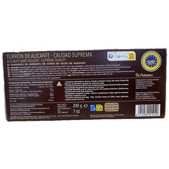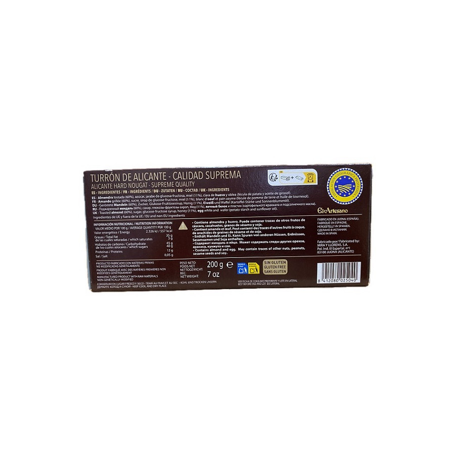 TURRÓN DE ALICANTE EL ARTESANO 200G CALIDAD SUPREMA