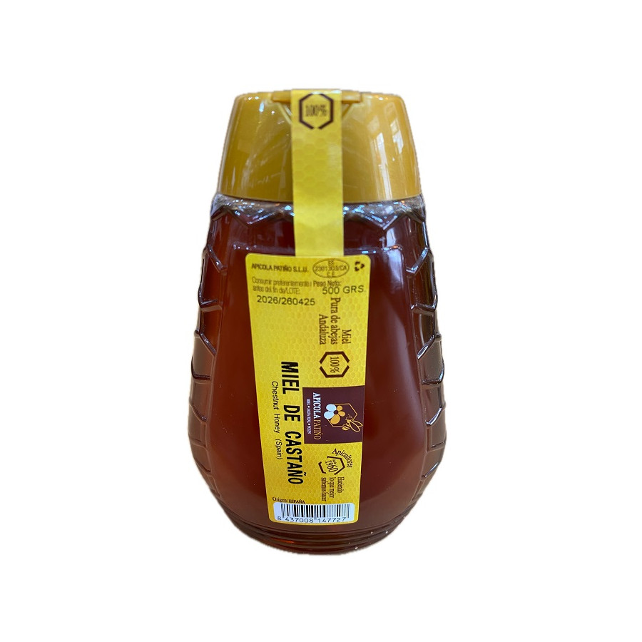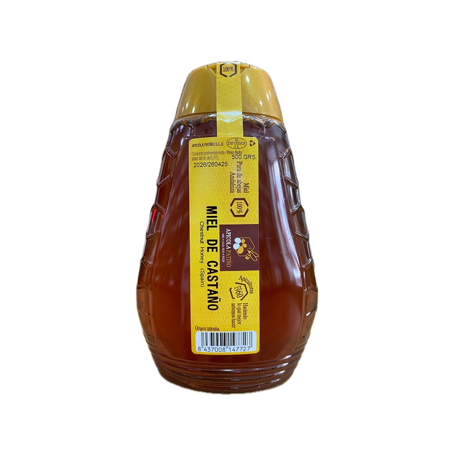 MIEL DE CASTAÑO APÍCOLA PATIÑO 500 G – ENVASE PLÁSTICO ANTIGOTEO ARTESANAL CONIL
