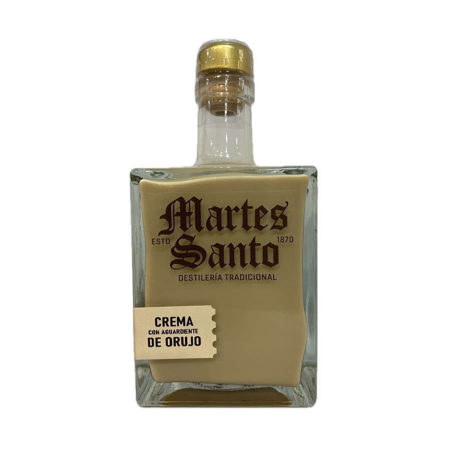 La Crema de Orujo Martes Santo es un licor artesanal andaluz de sabor suave y elegante, elaborado con aguardiente de orujo de uvas seleccionadas y un delicado toque cremoso que potencia su carácter tradicional. Cada botella refleja la experiencia y maestría de la destilería Martes Santo en Higuera de la Sierra, ofreciendo un producto único con personalidad y calidad superior. Con una graduación alcohólica del 17%, esta crema de orujo se disfruta mejor bien fría, sola, con hielo o como ingrediente en cócteles y postres, convirtiéndola en un licor versátil y perfecto para cualquier ocasión. Su aroma delicado y textura aterciopelada hacen que cada sorbo sea una experiencia sensorial completa, evocando la tradición y excelencia de la destilación artesanal andaluza. En Aires de Cádiz, tanto en nuestra tienda física en la Calle San Francisco nº 15 de Cádiz como en nuestra tienda online www.airesdecadiz.com, ofrecemos esta exclusiva crema de orujo, ideal para regalar o disfrutar como un auténtico producto gourmet de Andalucía.
