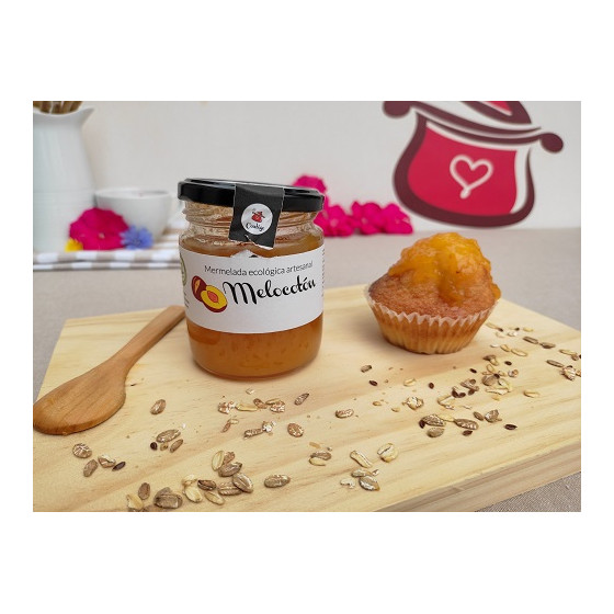 Tarro de 260 grs. Una gran mermelada de melocotón ecológico, elaborada de forma 100% artesanal, con melocotones ecológicos frescos, de temporada, procedentes de la huerta murciana. El azúcar de caña es certificado de comercio justo. La receta de toda la vida, hecho como en casa, perfecta para desayunos, acompañar quesos, postres, … Preparada con 82g de melocotón por 100g de mermelada, en junio, cada año. Propiedades de la mermelada de melocotón ecológico artesanal Conservascontigo El melocotón tiene un alto contenido en betacaroteno (provitamina A) y vitaminas C y E, además de aportar minerales como potasio, fósforo, magnesio y hierro, que lo hace un buen diurético y antianémico. Su contenido en fibra ayuda a mantener bajos niveles de colesterol y tiene un bajo contenido en grasas y alto contenido en agua, explicando esto su bajo valor calórico. Su contenido en carbohidratos (azúcares) son su nutriente más importante y los responsables de su dulzor. El azúcar de caña es un endulzante mucho más saludable que el azúcar blanco, ya que aporta fibra, vitaminas del grupo B y minerales como calcio, sodio, potasio, magnesio…, es decir, aportan nutrientes, no calorías vacías. Es una buena fuente de antioxidantes y posee efecto profiláctico contra bacterias y virus y efecto protector contra la caries. El agar agar usado como espesante es de origen vegetal, ya que se trata de un polisacárido extraído de un determinado tipo de algas rojas. No aporta ni color, ni olor, ni sabor, y es apto para diabéticos (no tiene azúcar) y celiacos (no tiene gluten). Tiene un alto contenido en fibra y es muy rico en calcio y hierro. Ingredientes de la mermelada de melocotón ecológico: Melocotón*, azúcar de caña **, Agar-Agar, zumo de limón* * Procedente de agricultura ecológica ** Procedente de agricultura ecológica y de comercio justo. Información nutricional de la mermelada de melocotón ecológico Valores medios por 100g: Valor energético 682kj/161kcal, Grasas 0,0g, de las cuales saturadas 0,0g, Hidratos de carbono 39,7g, de los cuales azucares 35,5g, Proteinas 0,5g, Sal 0g. Otros formatos disponibles bajo pedido antes de la temporada (98ml, 140ml, 450ml, 948ml) consultanos. Producto 100% natural, vegano, sin conservantes, sin colorantes, sin lactosa, sin gluten.