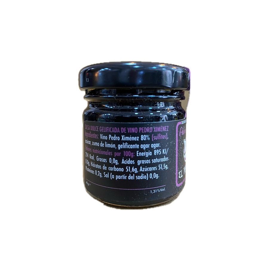 Déjate envolver por la intensidad y el dulzor natural del vino Pedro Ximénez del Marco de Jerez con esta exquisita salsa dulce gelificada de El Tesorillo, elaborada artesanalmente en Sanlúcar de Barrameda y presentada en un tarro de 40 gramos. Este producto gourmet es una muestra perfecta de la riqueza vinícola de la provincia de Cádiz, transformada en una experiencia culinaria que combina tradición y modernidad. La salsa captura la esencia del Pedro Ximénez, un vino conocido por su concentración de uvas pasificadas que le otorgan notas profundas de pasas, higos, caramelo y miel, junto a un sabor aterciopelado y muy persistente. Sin añadidos artificiales ni frutas, esta gelificación es la expresión más pura y refinada de este vino dulce emblemático. Este tamaño reducido es ideal para probar o regalar, aportando un toque exclusivo a cualquier mesa gourmet. Su sabor intenso y dulce marida de forma excepcional con quesos azules, foie gras, postres de chocolate, frutas frescas y frutos secos, así como con platos salados que busquen un contrapunto sofisticado. El Tesorillo, con su compromiso por preservar la identidad y calidad de los productos gaditanos, ha creado esta salsa como una forma innovadora de disfrutar el Pedro Ximénez, manteniendo la tradición vinícola y ofreciendo una nueva dimensión para los amantes de la gastronomía del sur de España. En nuestra tienda gourmet Aires de Cádiz, situada en la calle San Francisco nº 15, Cádiz capital, puedes encontrar este y otros productos exclusivos de El Tesorillo, disponibles también para compra online. Te invitamos a visitarnos y descubrir el auténtico sabor de la provincia de Cádiz en cada producto.