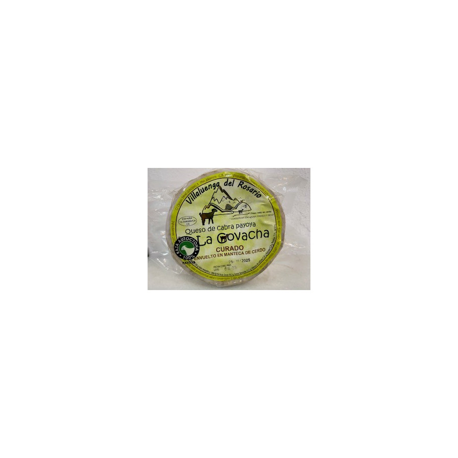 MINI QUESO LA COVACHA DE VILLALUENGA DEL ROSARIO, QUESO DE LECHE DE CABRA RAZA AUTÓCTONA PAYOYA 100%. CURADO ENVUELTO EN MANTECA DE CERDO. PIEZA DE 460 GR APROXIMADO.