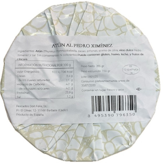 ATÚN ROJO DE BARBATE AL PEDRO XIMÉNEZ FELISA GOURMET LATA 265 G