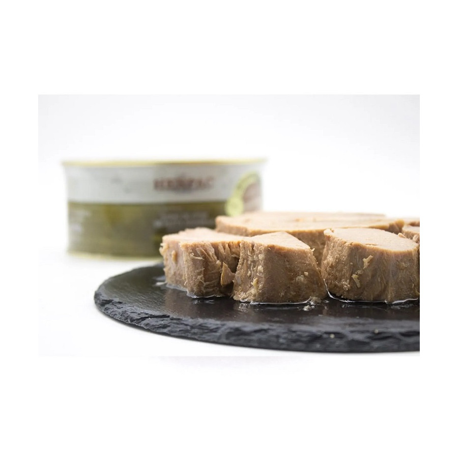 Lomo de atún en aceite de girasol 942 g Jugosos trozos de lomo de atún en aceite de girasol en formato familiar. Perfectos para añadir a ensaladas o aliños. Jugosos trozos de lomo de atún en aceite de girasol en formato familiar. Perfectos para añadir a ensaladas o aliños. El lomo de atún Herpac es tan delicioso que encantará a todos aquellos que lo prueben. Gracias a su formato de 942 g podrás disfrutarlo junto a tu familia o en pequeñas reuniones de amigos. Además, viene preparado de forma que puedas añadirlo a tus ensaladas, así como en aliños. Hay personas que también lo sirven en pequeños trozos, acompañándolo de un poco de pan y de salsas. Este lomo de atún procede del atún de aleta amarilla o yellowfin. El atún de aleta amarilla cuenta con múltiples beneficios para la salud. Gracias a sus propiedades nutricionales tiene características antiinflamatorias. Además, sus ácidos grasos omega-3 y niveles de potasio ayudan a prevenir enfermedades del corazón, mejorando a su vez el riego sanguíneo. También es muy importante saber que el atún de aleta amarilla contiene mucha vitamina B, lo cual hace que nuestro cuerpo esté lleno de energía. El lomo de atún en aceite de girasol Herpac ha sido envasado y esterilizado cumpliendo todos nuestros controles de calidad. Esto permite que pueda conservarse durante un prolongado periodo de tiempo. Nuestro consejo es que se guarde en un lugar fresco y seco. Una vez abierto, recomendamos tenerlo en la nevera entre 0º y 4ºC no más allá de cinco días. En Herpac velamos por la calidad y el sabor, seleccionando rigurosamente los lomos de atún que posteriormente van a ser cortados y envasados. Todo el proceso es controlado por profesionales, de manera que puedas consumir un producto gourmet elaborado para los paladares más exigentes.