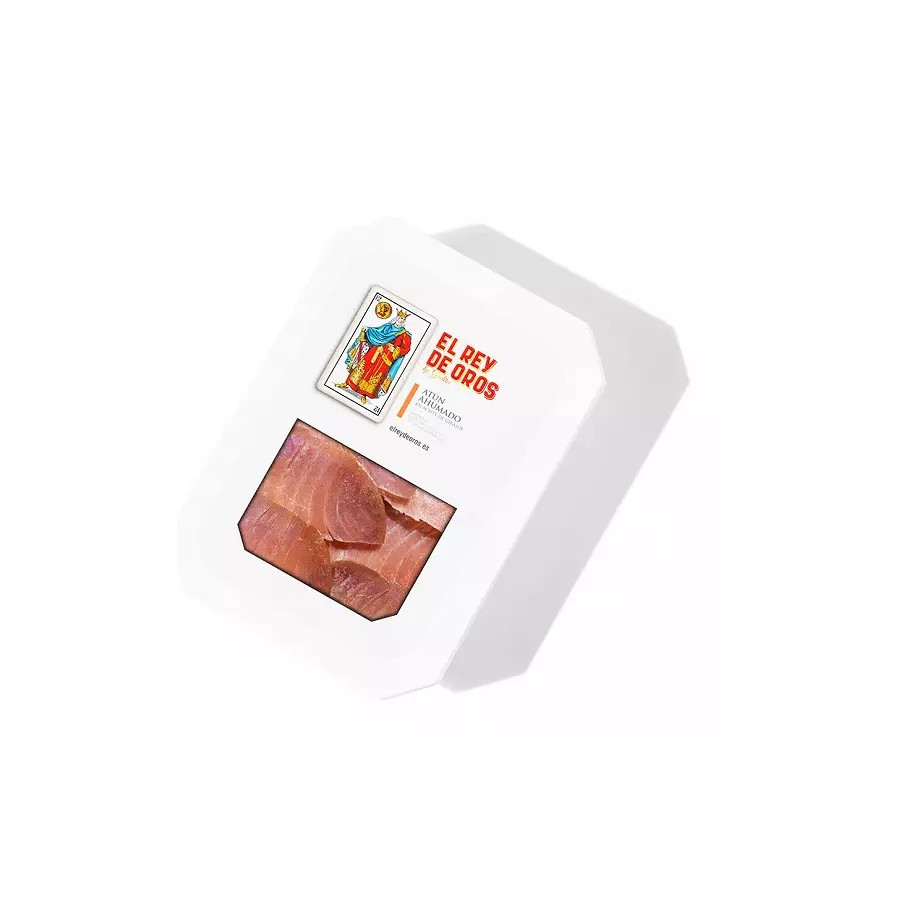Atún ahumado El Rey de Oros Suavidad, sabor y un punto equilibrado de sal. Las finas lonchas de atún ahumado El Rey de Oros puede dar gran juego en tu cocina: ensaladas, carpaccio... INGREDIENTES: Atún aleta amarilla ahumado (Thunnus Albacares), sal, antioxidantes (ascorbato sódico y citratos de sodio) y aceite refinado de girasol. ALÉRGENOS: Pescado y productos a base de pescado (Atún), puede contener (por estar presentes en las instalaciones) leche y sulfitos. Conservar a temperatura 0º-5ºC. Una vez abierto mantener en nevera y consumir lo antes posible.