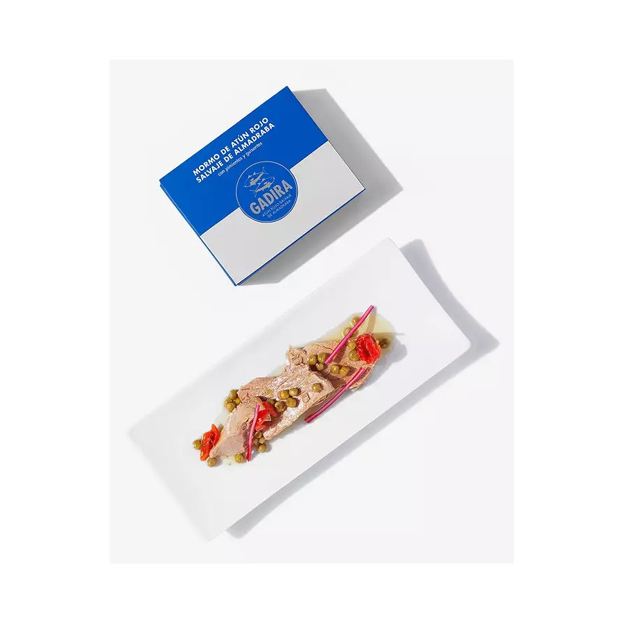 MORMO DE ATÚN ROJO SALVAJE DE ALMADRABA CON PIMIENTOS Y GUISANTES LATA 237g GADIRA BARBATE
