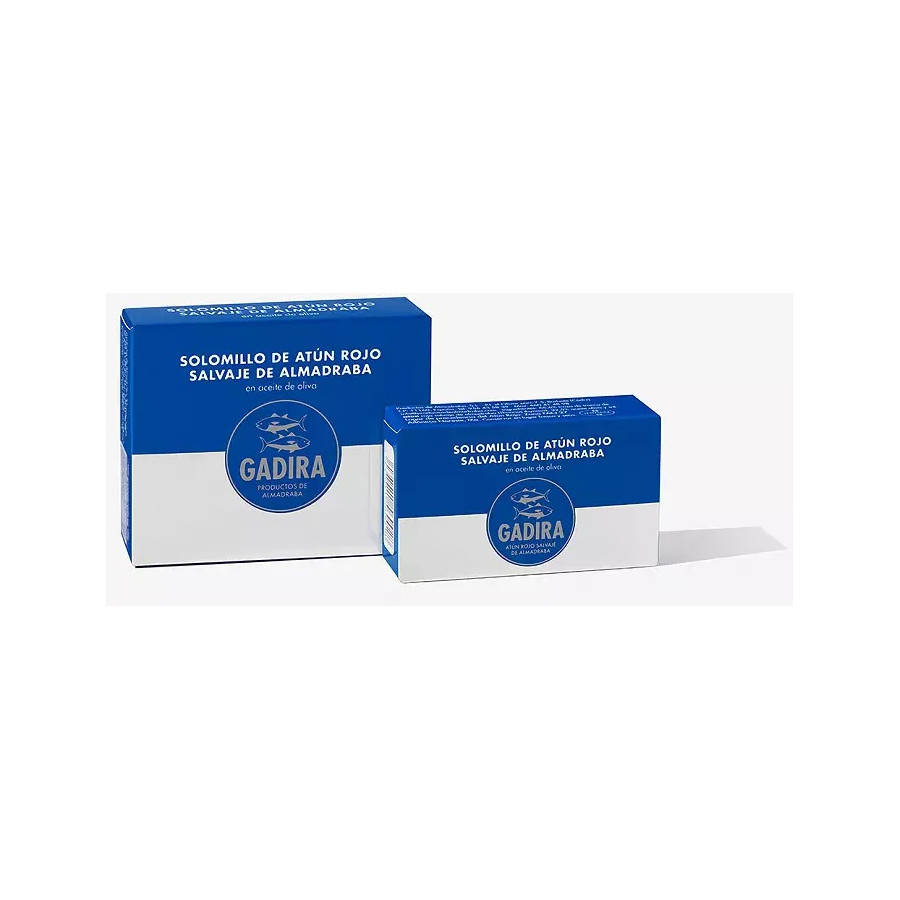 Solomillo de atún de almadraba en aceite de oliva Una de las últimas novedades de Gadira, elaborada con el solomillo, un corte semigraso situado a continuación del morrillo. Gran aliado gastronómico. INGREDIENTES: Bloque entero de solomillo de Atún Rojo Salvaje de Almadraba (Thunnus Thynnus), aceite de oliva y sal. ALÉRGENOS: Pescados y productos a base de pescado (Atún) Conservar a temperatura ambiente en un lugar fresco y seco.