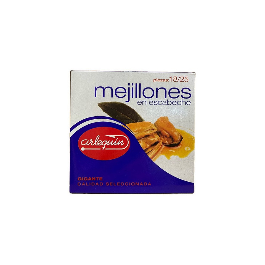 MEJILLONES EN ESCABECHE GIGANTES 18/25 PIEZAS 523 gr ARLEQUÍN CALIDAD SELECCIONADA