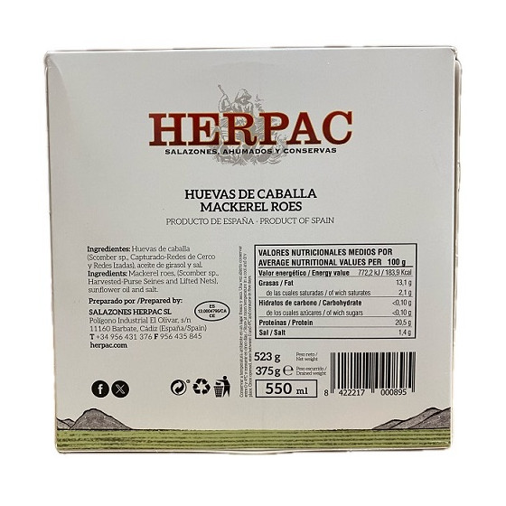 HUEVAS DE CABALLA 523 gr EN ACEITE DE GIRASOL HERPAC BARBATE CÁDIZ