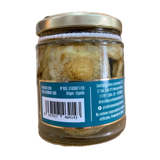 Descubre el sabor más auténtico del interior de la provincia de Cádiz con estos alcauciles silvestres en conserva de Cantizano Salsas, presentados en un tarro de 230 gramos. Esta empresa familiar de Paterna de Rivera elabora sus conservas de forma completamente artesanal, manteniendo vivas las recetas tradicionales que durante generaciones han dado valor a uno de los productos más representativos de la cocina gaditana: la alcachofa silvestre. Recolectados a mano en su momento óptimo y cocinados sin prisas, estos alcauciles destacan por su sabor profundo, su textura tierna y su versatilidad en la cocina. No contienen aditivos artificiales ni conservantes industriales, solo ingredientes naturales que respetan el sabor original del campo. El resultado es una conserva de altísima calidad, lista para disfrutar sola o como parte de platos más elaborados. El formato de 230 g es ideal para hogares que valoran lo auténtico y buscan incorporar productos tradicionales en su cocina diaria. Son perfectos para acompañar carnes ibéricas, pescados al horno, arroces, guisos caseros o como tapa gourmet, simplemente con un poco de aceite de oliva virgen extra. En nuestra tienda gourmet Aires de Cádiz, ubicada en la calle San Francisco nº 15 de Cádiz capital, puedes encontrar estos alcauciles en conserva junto a una cuidada selección de productos locales. También están disponibles en nuestra tienda online, donde llevamos el mejor sabor de la provincia de Cádiz directamente a tu mesa. Los alcauciles Cantizano son mucho más que una conserva: son una muestra viva del patrimonio gastronómico de los pueblos blancos de Cádiz. Su sabor, textura y elaboración artesanal los convierten en una joya culinaria para quienes aprecian la tradición, la calidad y la identidad de lo auténtico.