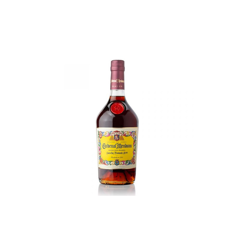 Luminoso, transparente, de caoba oscuro. De aroma redondo, limpio, elegante, vinoso. Equilibrado, persistente en boca y sin aristas. Personalidad, armonía de matices y el recuerdo profundo a pasas y ciruelas. Así es Cardenal Mendoza Clásico, un Solera Gran Reserva elaborado a partir de una selección de las mejores holandas de alquitaras, que se envejecen por el tradicional sistema de soleras y criaderas. El conjunto de botas de Cardenal Mendoza, previamente envinadas en oloroso y pedro ximénez, conforman una de las mayores bodegas de Solera Gran Reserva, garantía de la vejez y calidad de este brandy.