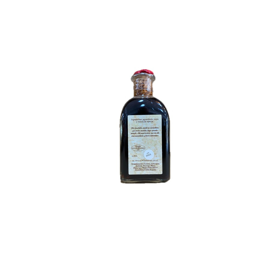 INGREDIENTES: Aguardiente, mora y mezcla de especias. Rio Guadalete, nacido en Grazalema, que con tus caudales riegas grandes zarzales. Ahí nace la mora, que con ella ricas mermeladas y licores elaboramos. Alc: 20%